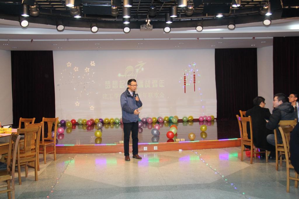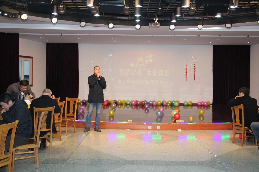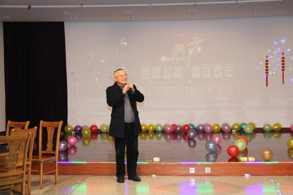 郑荣跃院长一席热情洋溢的新年致词拉开了联欢会的序幕。他首先代表学院向全体教职员工和离退休教师致以新年的祝福和节日的问候,对辛勤付出的全院教职工和一直支持和关心学院发展的离退休教师和各家产业单位表示衷心的感谢。他简要回顾了过去一年学院各项工作所取得的可喜成绩。他指出,2016年是硕果累累的一年,展望2017年学院凝心聚力,拼搏进取,继续再攀高峰。
