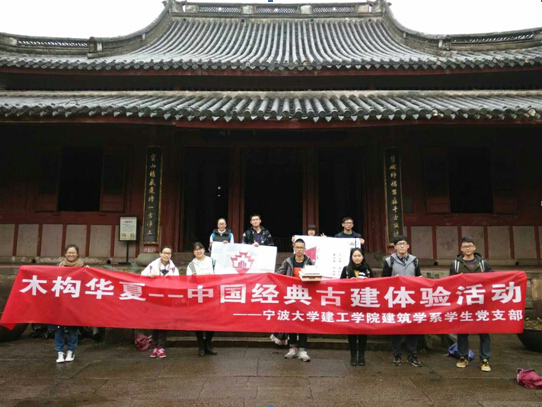 建筑系学生党支部参加了由宁波市文化广电新闻出版局主办的木构华夏---中国经典古建体验活动。