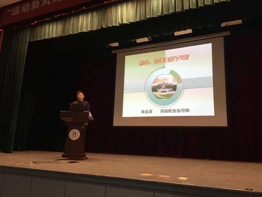 动员会上,俞老师分析了就业形势,通过实例和统计的数据分析了七点就业难的主要原因,并就思想、信息、能力、材料四个方面的准备来告诉同学们在求职过程中应该注意的事项和准备,此外,列举了一些面试时容易忽视的问题。最后,俞老师预祝大家找到自己理想的工作并嘱咐同学们母校时刻关注大家的成长。学工办辅导员吴燕丽老师介绍了就业协议书、报到证等相关注意事项。