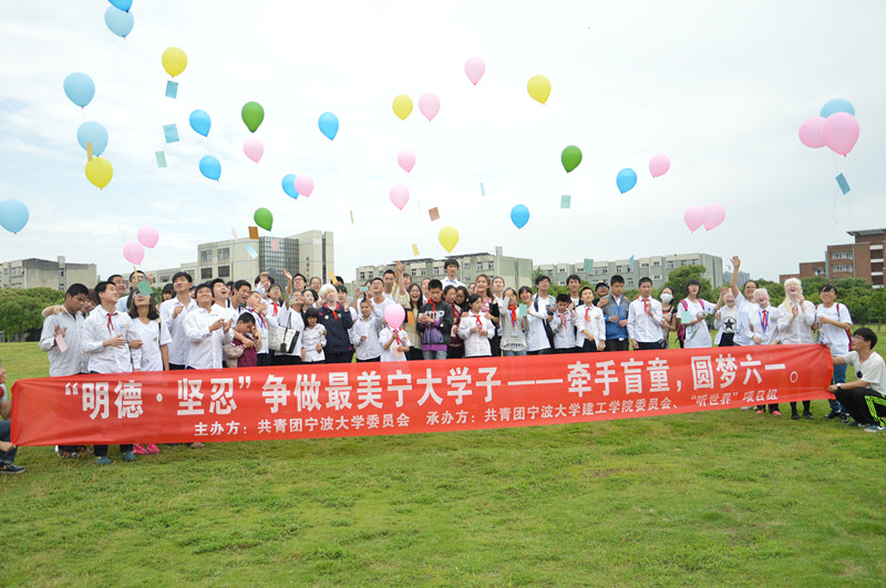 在宁波市聋哑学校的盲童班里,小朋友们一直有个梦想,他们渴望像正常的孩子一样可以上大学,在大学的校园里上课、学习。近日,“最美宁大学子”——听世界公益项目组牵手盲童踏上圆梦之旅,带领盲人小朋友走进美丽的宁大,用听觉和触觉感受多彩的校园生活。