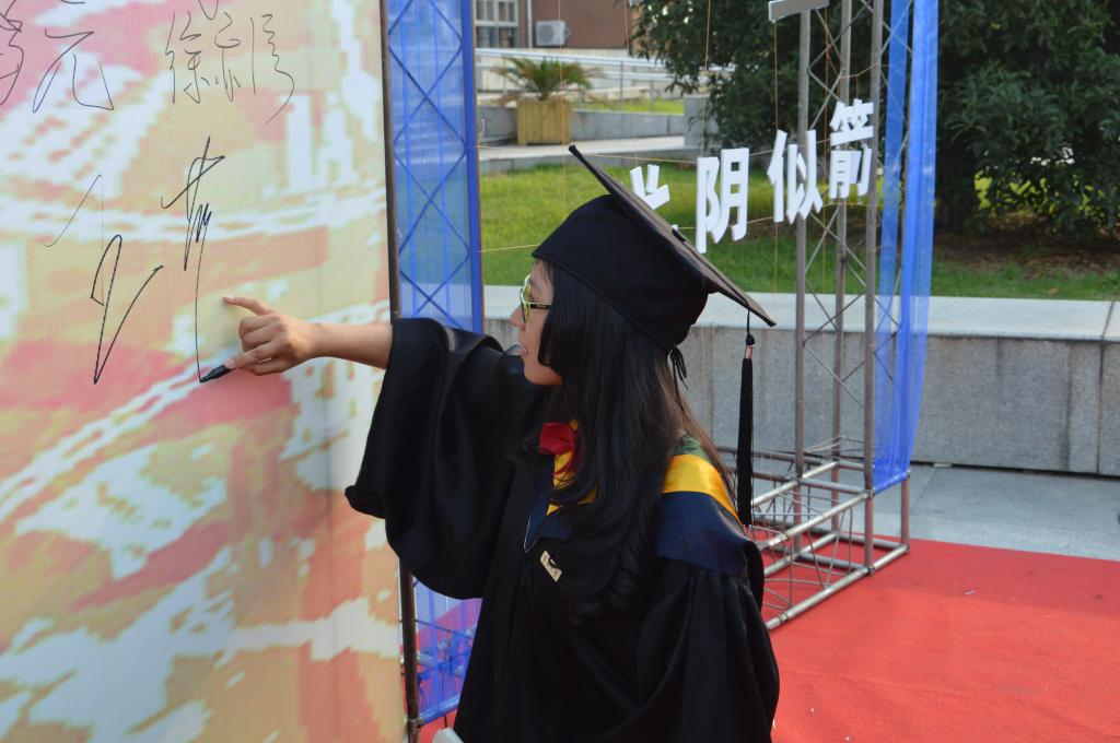 首先,院党总支书记王益澄教授宣布毕业典礼正式开始,并介绍出席此次典礼的领导和嘉宾。接着院党委副书记俞金波老师宣布获得2014届省级、校级、院级优秀毕业生名单。在学生感言后,学院院长郑荣跃教授对2014届毕业生表示祝贺,希望他们能脚踏实地,怀有理想之心,走出校门以后,继续关心、支持母校的建设和发展。典礼的最后,学院领导们为毕业生颁授学位(拨穗),请毕业生同学依次上台并合影。