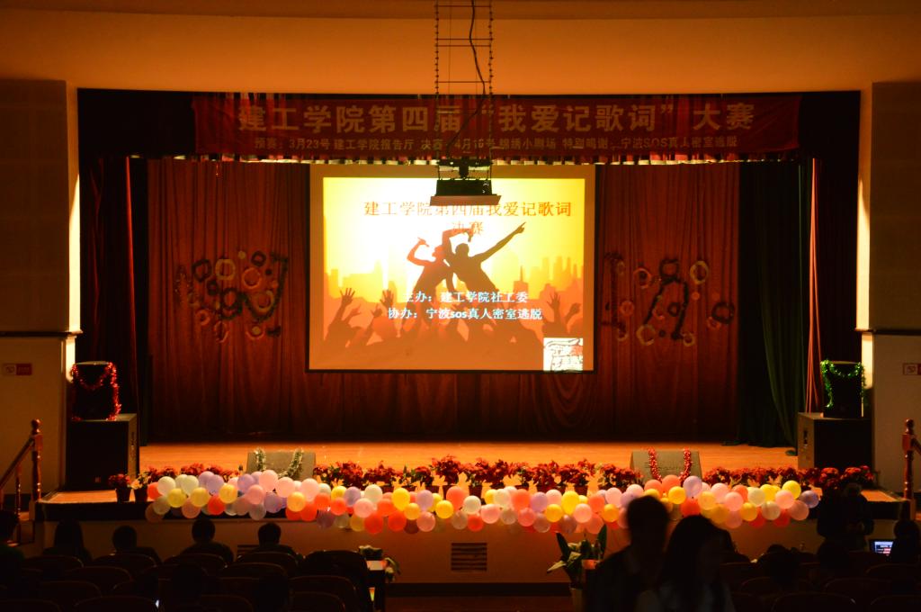 社工委主办的第四届“我爱记歌词”决赛在锦绣小剧场隆重举行。建工学院党委副书记俞金波老师、学工办沈妍伶老师、周双双老师以及其他兄弟学院代表现场助阵本次活动。