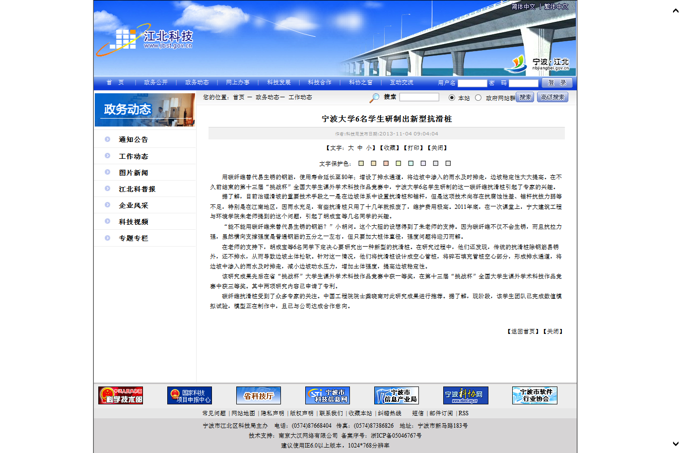 学子的作品所带来的影响仍在持续发酵。截止到目前,已有宁波日报等大众媒体对本作品及其创作团队进行详细报道,更有凤凰网、中国岩土网、宁波市科技信息网、天津网、长春科技网等进行转载报道。而宁大建工学子研制出新型抗滑桩的消息更是不胫而走,引起整个公众的注意;并且已有相关企业就作品与其团队接洽。