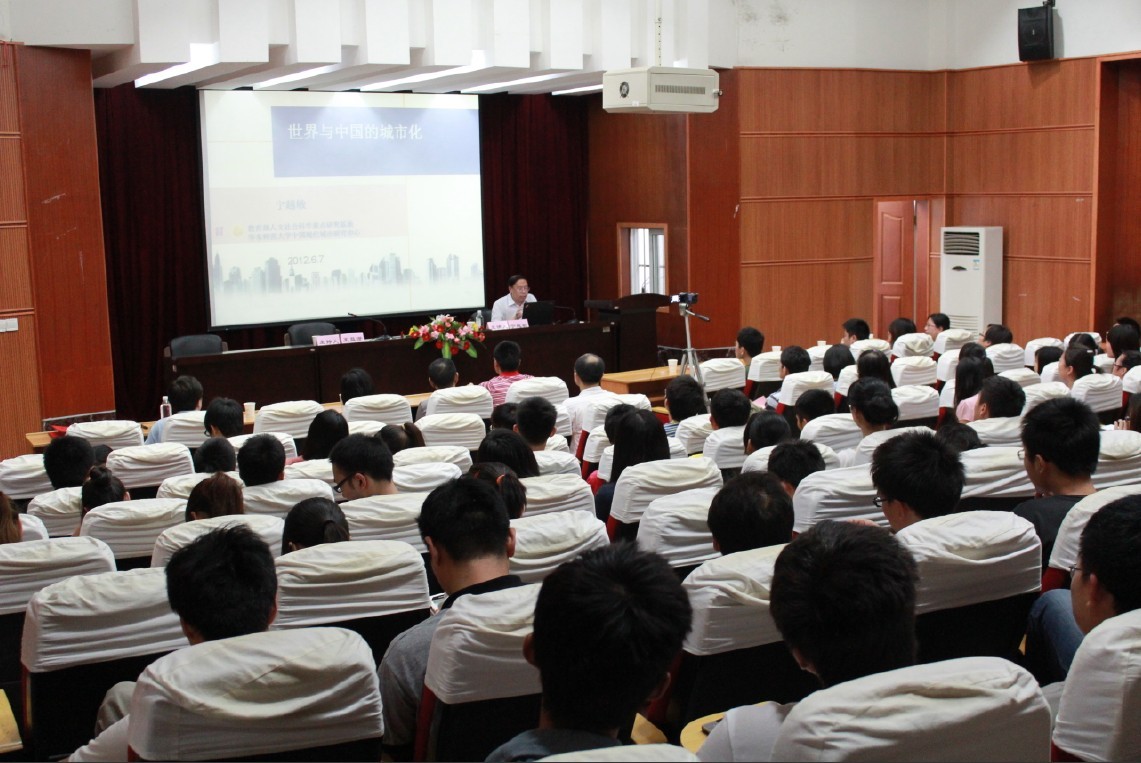 报告会上,宁越敏教授为在场师生做了一场精彩纷呈而又引人入胜的报告。他由介绍世界城市化的概念和进程开始,讨论了中国的城市化进程现状及其内部问题。其中,宁教授以城市化现象为例,着重强调了人的精神追求的重要性。