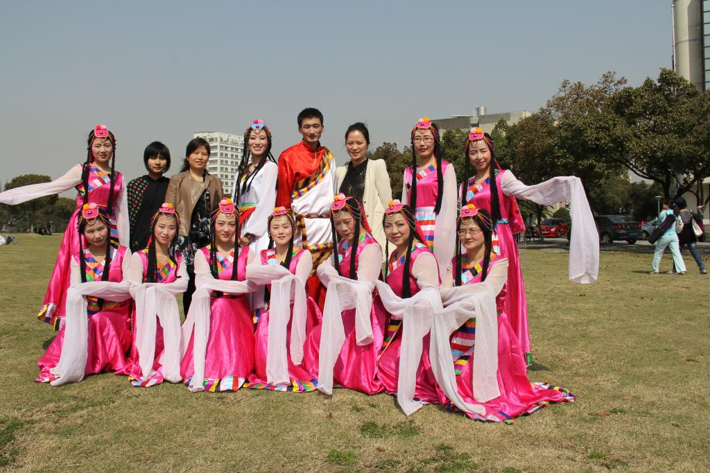为本次展示会奉献的是民族舞《雪莲姑娘》。女教工们身着秀美的藏族民族服,融合了藏族神圣的哈达礼仪的舞蹈演绎了美丽的藏族女孩雪莲姑娘的似水柔情,尤其