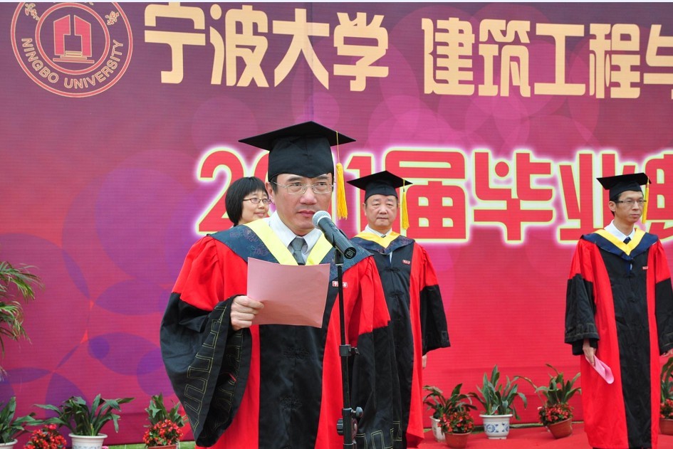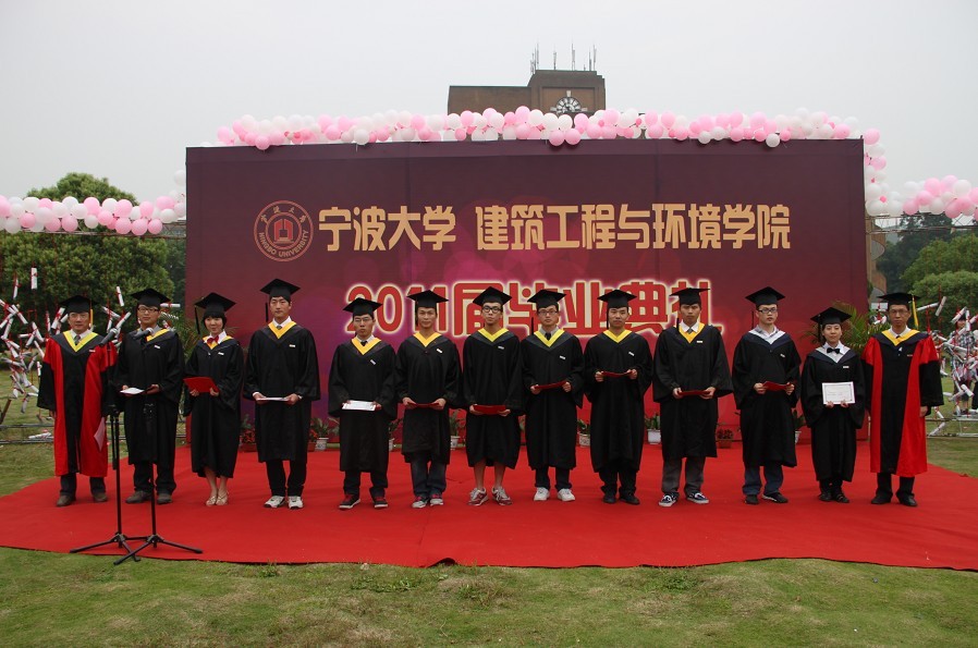 学院党委书记王益澄、院长郑荣跃、副院长柳俊哲、副院长王侃、宁大建筑设计研究院院长原正、宁大工程建设监理有限公司董事长李辉为全体毕业生授予学位并与毕业生合影留念。各班毕业生代表在典礼上发表了毕业感言,表达了对母校、对老师、对同学的感激与不舍。