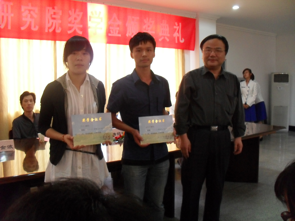 强化06班陈洁作了发言。出席颁奖仪式的领导为获奖的49名同学颁发了奖学金证书。