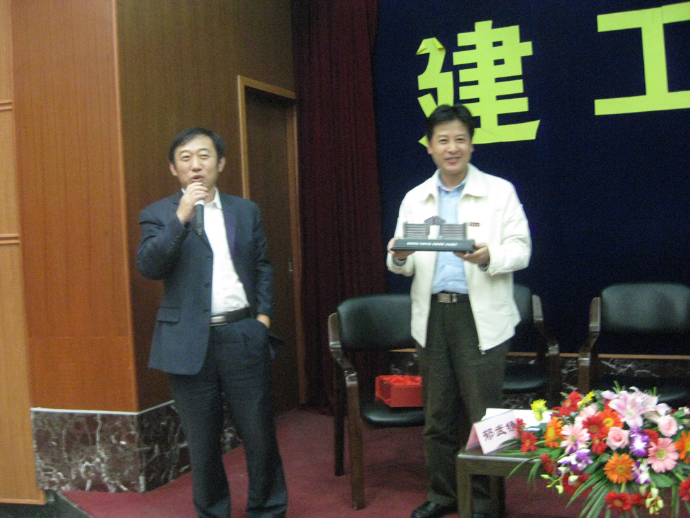 访谈结束后,建工学院党委书记苏尔焜、主持工作副院长张殿发向两位校友送上了“宁大南天门”纪念品,并对他们在百忙工作之余回访母校、为母校学子们传经送宝表示感谢。