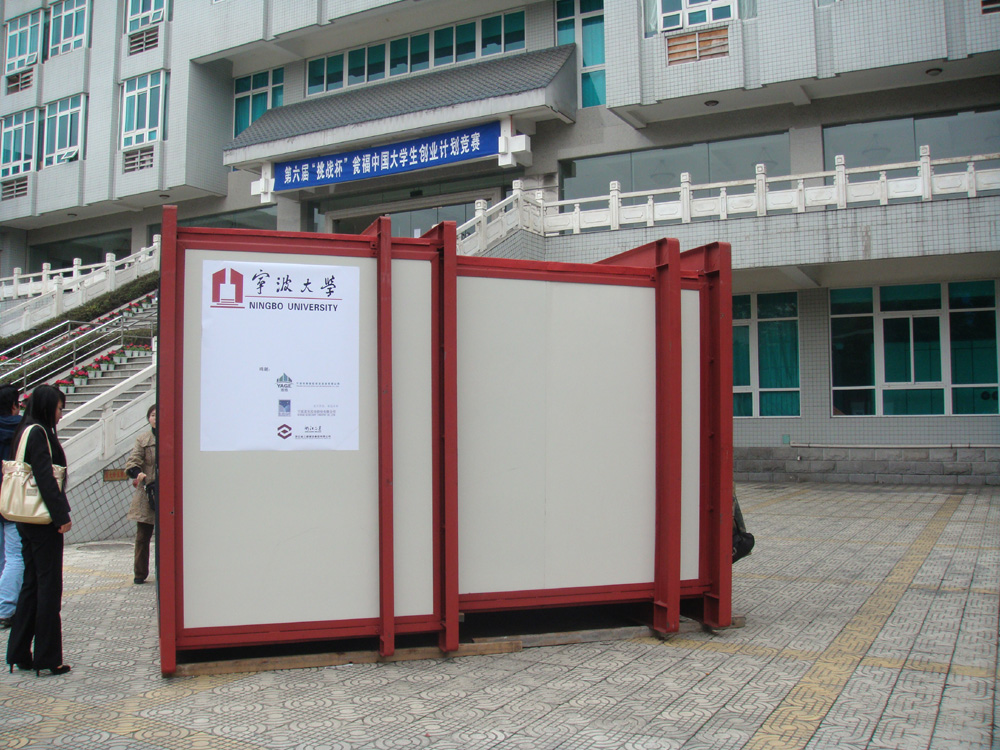 今年6月初,该创业团队在浙江省第六届 “挑战杯”大学生创业计划竞赛决赛中受到评委们的一致好评,荣获全省二等奖。其独特的设计理念被《宁波晚报》等媒体报导后,在社会上形成了一定反响。此后,韩国国家电视台――韩国广播公司上海支局局长金辰洙率领的采访组专程来校采访,并制作了专题片在韩国播出。今年9月,创业团队在校团委、建工学院的支持下,在专业教师的精心指导下,将设计作品进行了实践制作,并将样品送至决赛现场――四川大学参加决赛。