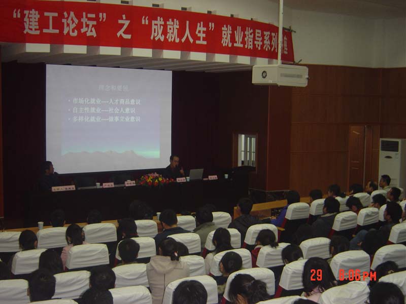 今年有毕业班同学549人,创历年新高。为更好地做好今年的就业指导工作,学院组织策划了“职业·风采·成功”就业指导主题系列活动,活动分为讲座板块、活动板块、竞赛板块等。校党委副书记邢学亮在讲话中对该院的就业指导主题系列活动给予了积极评价,他指出,学校要继续加大力度贯彻落实“以学生为本”的教育理念,关心广大同学的成长成材,帮助广大毕业生提高就业竞争能力并实现就业。