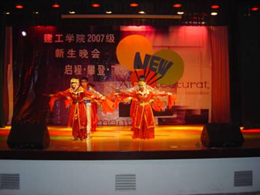 晚会在城市规划07班同学们激情洋溢的蒙古舞中拉开帷幕,新入学的大一同学用一个个精彩的节目让这个略带秋意的夜晚不再寒冷。独唱、吉他弹唱、小品等多种多样的节目让在场的观众欣赏到了一场丰富多彩的演出。音乐剧《Forever》把本场演出推向高潮……