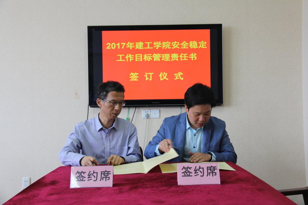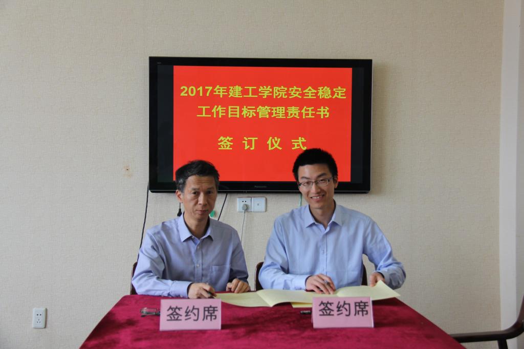 5月8日下午,工口漫画 安全稳定工作目标管理责任书签订仪式在学院303会议室举行。会上,学院安全稳定工作责任人郑荣跃院长分别与各个基层学术组织系/所负责人签订了《2017年建工学院安全稳定工作目标管理责任书》。