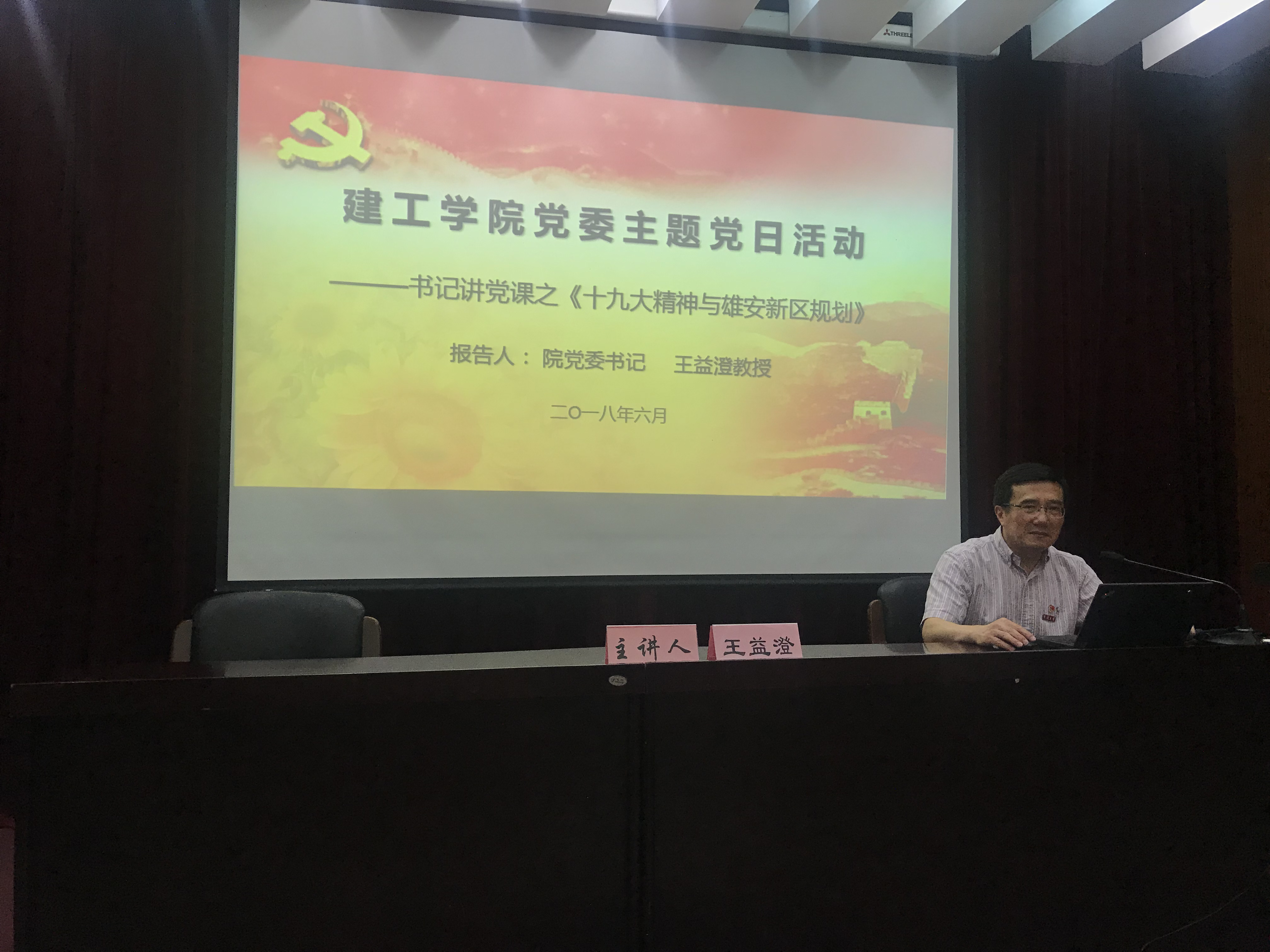6月22日下午,工口漫画 建工学院在学院报告厅成功举行了“全院师生党员同上一堂党课活动”暨党委主题党日活动。学院党委书记王益澄作题为《十九大精神与雄安新区规划》的报告。建工学院全体师生党员共同聆听了报告会。