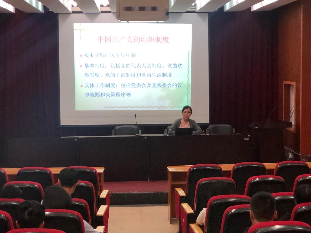 围绕本次讲座的主题“党的组织制度”,吴燕丽老师首先对党的组织制度内容进行了讲解,解释了民主与集中是辩证统一的关系,让同学们更加深入的理解党的组织制度内容、学习和遵守党的组织原则和纪律重要意义,以及知道自己为什么要学习党的组织制度。之后,老师从往届毕业生的就业情况引申到为何入党及成为合格党员的必要条件内容。同学们也对此有不同的见解与看法,与老师进行了积极的交流。最后,讲解了党员的先进性,从学生的角度进行深度解析。