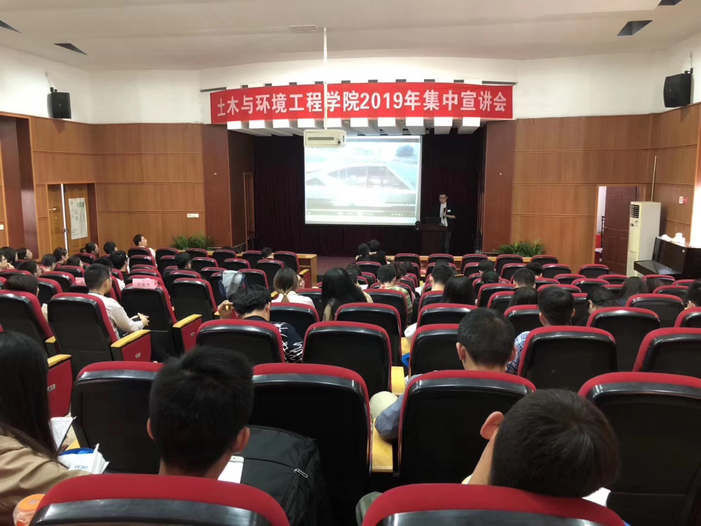 10月23日下午,土木与环境工程学院集中宣讲会在学院报告厅举行,18家建设类、房产类、设计类企业及2020届毕业生参加了此次宣讲会。