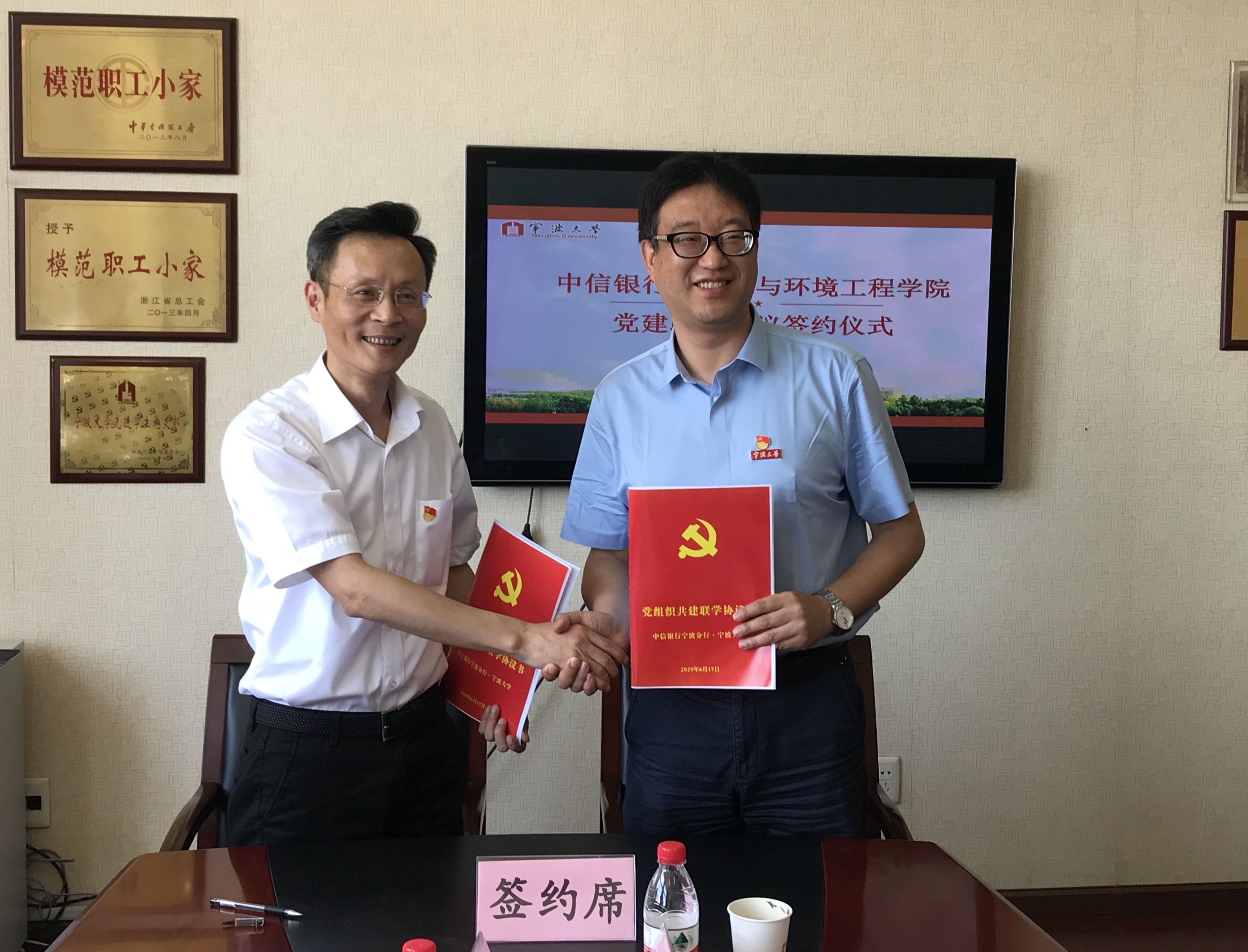 6月17日上午,工口漫画 与中信银行宁波分行在学院党员之家进行党建联学协议签约仪式。中信银行宁波分行工会副主席、党群工作部总经理姚小荣、高新支行行长邱泼、高新支行副行长徐钱辉,院党委书记林奇凯、院党委副书记汪丹、环境系主任余振勋、院党政办主任兼分工会副主席王海芳等出席了本次签约仪式。