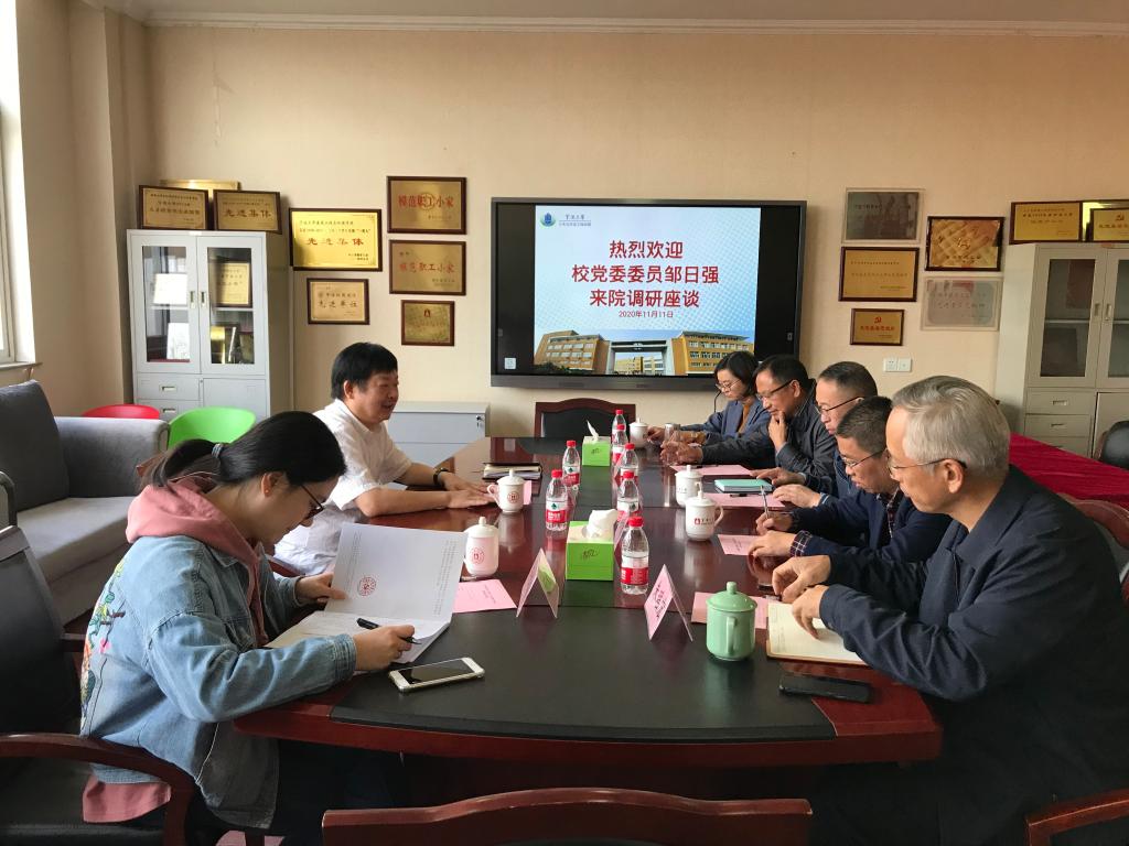2020年11月11日下午, 校党委委员邹日强赴土工口漫画 调研座谈。