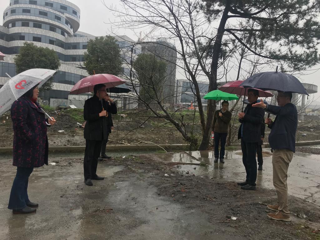 为了全面掌握规划工程内容及范围,袁处长带领大家,依次对学院沿河地带、结构实验室、火灾实验室等内容进行了一一核实,并根据实际情况,对部分工作现场进行了安排部署。大家冒着大雨,走完了学院大部分边界,一路边看规划图一边分析。