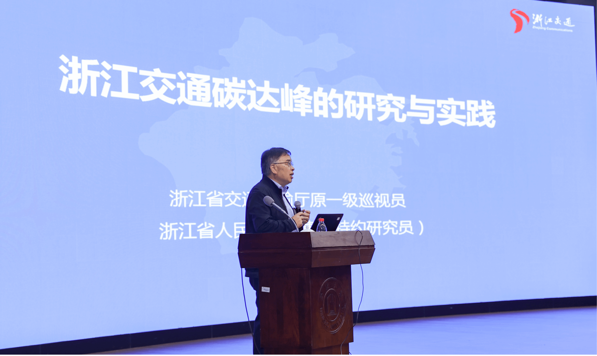 浙江省交通运输厅原一级巡视员、浙江省人民政府参事(特约研究员)、正高级工程师任忠,以《浙江交通碳达峰的研究与实践》为主题作报告,介绍了浙江省交通领域碳达峰主要研究结论,围绕运输装备低碳升级、优化调整运输结构、提高运输组织效率、加强出行活动管理、低碳基础设施建设和强化科技支撑引领六方面,解读了浙江省交通领域碳达峰实施方案,总结了省内数字化碳工具成效和各市典型案例,系统推进交通领域碳达峰工作。