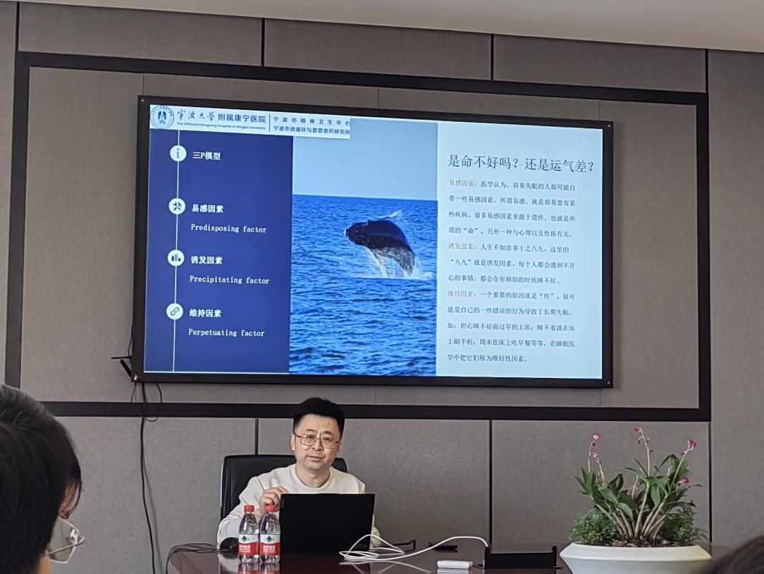 讲座现场,刘医生点明了今年世界睡眠日的主题——“健康睡眠,人人共享”。他指出,近些年来,因生活压力导致紧张、焦虑、精神负担增大,越来越多的人被睡眠障碍所困扰,同时人们对于自身的健康意识的薄弱,对睡眠障碍疾病的不了解,常常忽视了睡眠障碍对自身的侵害。他通过介绍睡眠的运行方式,向在场师生科普了健康睡眠的科学内涵,良好的睡眠不只睡眠时长这一个指标,应该是多维度的一个睡眠觉醒模式,需要适应个体、社会、环境的需求,促进身心健康。同时,刘医生介绍了睡眠不足的危害,睡眠障碍是一种危害很大的慢性疾病,其与躯体疾病的发生关系密切。睡眠不足可能诱发人体出现免疫力下降、记忆力减退、头痛、抑郁、提前衰老及提升猝死概率等一系列危害。严重影响人们的日常生活工作与学习。刘医生通过通俗易懂的语言表述向大家科普了失眠的三个“好友”——引起失眠的3P模型,即易感因素、诱发因素和维持因素,指出造成失眠的因素有很多,而非药物治疗才是治疗失眠的最重要途径,所以当人们遇到睡眠困扰是不必过分担心服药造成的其他负担。刘医生表示,对于失眠,除了引起重视及时就医外,还要通过合理安排作息、平衡膳食、运动锻炼等生活干预措施,改善睡眠质量,远离睡眠障碍。正确的睡眠方式不是教条式的死板,要因人而异,灵活变通,能获得第二天良好的“精气神”即为好的睡眠。
