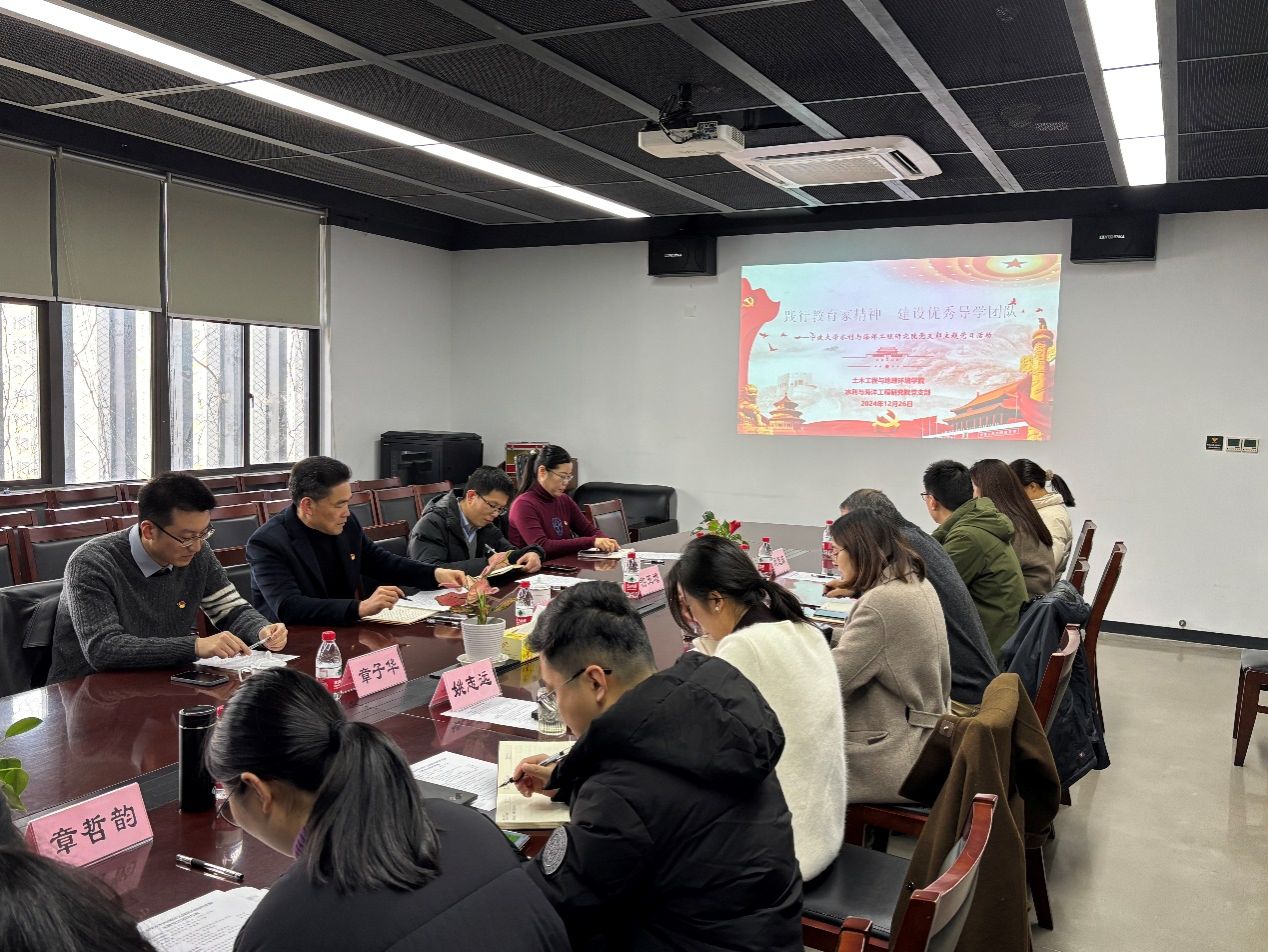 12月26日,校党委委员、纪委书记王杰法一行到水利与海洋工程研究院联系基层党支部建设工作,并列席参加该支部“践行教育家精神、建设优秀导学团队”主题党日活动。除水利与海洋工程研究院党支部成员参会外,列席会议的还有校党校办副主任游玉增,土环学院副院长、党委委员章子华和党委副书记、纪委书记朱剑琼等。