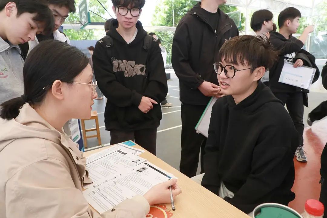 “从大一的《职业规划与创新创业》课开始,学校老师始终教导我们要多多开展职场探索,努力实现学以致用、人职匹配。通过之前几次专场招聘会的历练,我目前已经顺利签约中铁二十四局了,今天是带着学弟学妹们也来提前‘领市面’的”,来自土木工程专业的大四学生党员谭向东如是说。