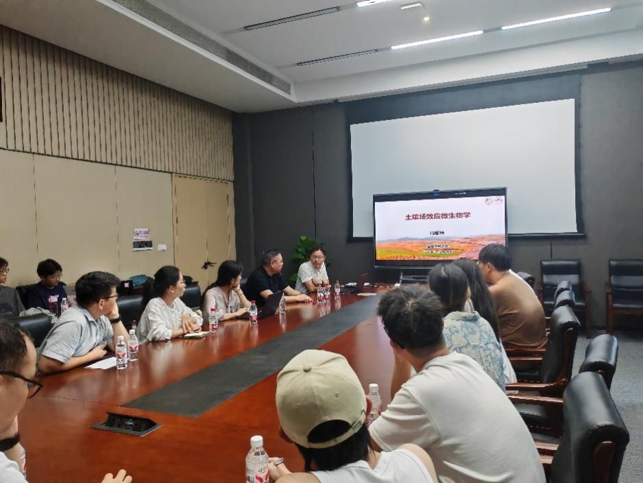 报告会由我校One Health科学研究院贺斌教授主持,报告会上周顺桂教授结合其深厚的理论素养和丰富的科研实践,深入浅出地介绍了土壤微生物学的最新国际研究进展与发展趋势。他重点阐述了光电子驱动非光合微生物生长代谢、多能量场耦合下的微生物获能途径等关键内容,并通过生动的案例和详实的数据进行了论证与展示。周顺桂教授指出,场效应的引入将传统的化能合成细胞拓展至场能,为理解地球极端环境乃至地外生命起源提供了新线索,这一见解引发了在场师生的深入思考。