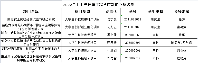 关于2022年度学生科研项目(新苗)立项名单的公示