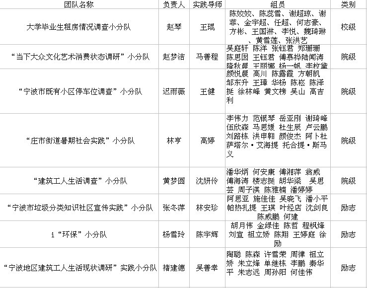 2013年建工学院暑期社会实践校级、院级、励志团队评选公示