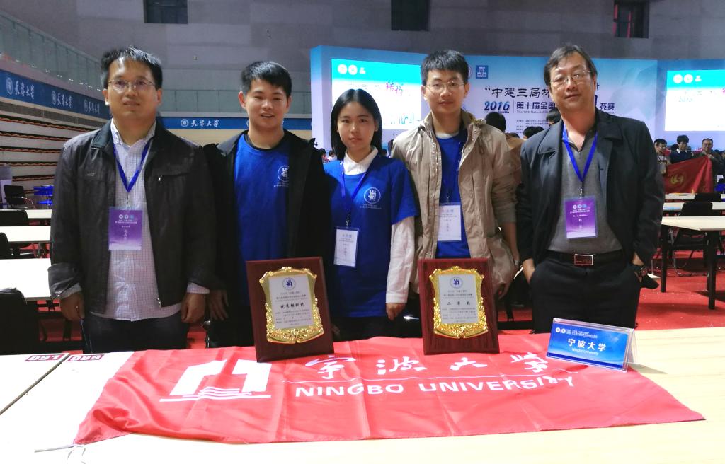 2016年10月12至16日, “中建三局杯”第十届全国大学生结构设计竞赛在天津大学举行。由建工学院林云老师、布占宇老师、李俊华老师指导,王亮亮、叶晓飞、张锐同学参赛的作品“擎天广厦”荣获二等奖。在赛前准备阶段,我校指导老师积极参与主办方的赛题解析,提出很多建设性的意见和建议并给出合理有效的解决方案,得到主办方和组委会的一致肯定,在大赛中同时荣获优秀组织奖。