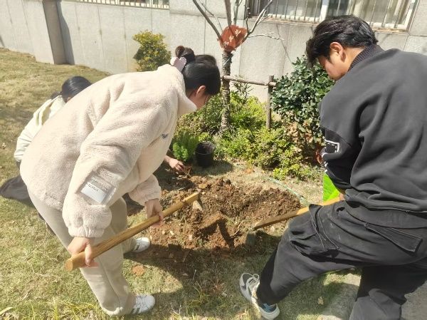 活动现场,师生们热情高涨,挥锹铲土、扶苗培根、提水浇灌,共同栽种了数十株象征希望与传承的树苗,每个人脸上都洋溢着劳动的喜悦。支部成员身体力行,以有形之树承载无形之精神,让“饮水思源、薪火相传”的责任与担当深植人心,为培育优秀学院风貌夯实根基。