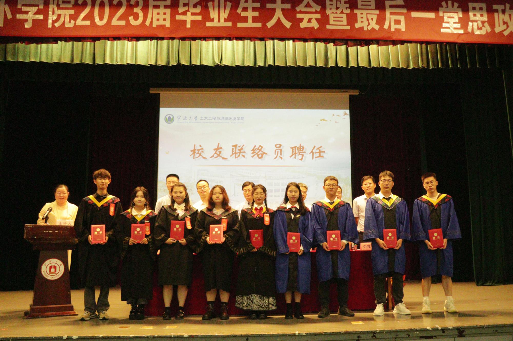 大会上,院领导依次宣读各级各类优秀毕业生名单并颁发证书,宣读校友工作联络员名单并颁发聘书。2019级地理科学(师范)专业杨莹同学、2020级土木水利专业研究生王佳乐同学分别作为本科生、研究生毕业生代表上台发言。他们衷心感谢母校的悉心栽培,感谢一直以来关心他们的学院领导和老师,分享了在宁大的许多“第一次”和无数感动瞬间。