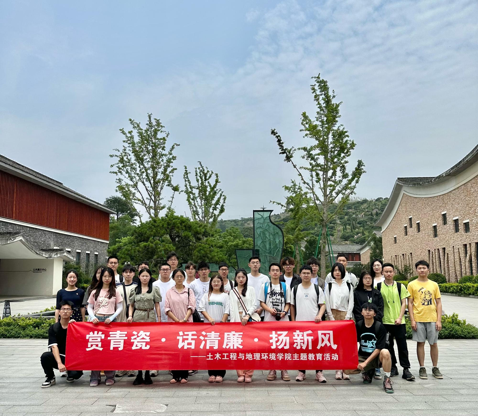 “九秋风露越窑开,夺得千峰翠色来”,主题教育的第一站,同学们来到了上林湖越窑青瓷博物馆,了解了越窑青瓷的发展历史、独特的制作工艺以及历史影响等,参观了越窑青瓷中的精品——“秘色瓷”。青瓷光洁透彻、更少杂质,呈现出如冰似玉的绝美效果,古瓷尚青,青则清,清则廉,在参观中,同学们感受到了青瓷中蕴含的清廉内涵以及“守身如玉”“静气定力”的优秀品质。