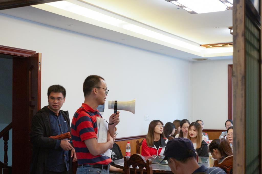 10月13日中午,同学们抵达宁波市奉化区溪口镇,吃完午饭后下起了大雨,李老师与童老师为同学们讲解了四明山南区概况与野外实习的注意事项,特别提醒同学们雨天要注意防水防滑。