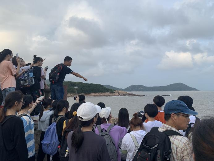 第一天下午,老师同学们乘舟渡海到达普陀山岛,开启了野外探索的第一站。普陀山人文底蕴浓厚,其典型、丰富的海岸地貌,更是一本活教材,等待着同学们的翻阅。