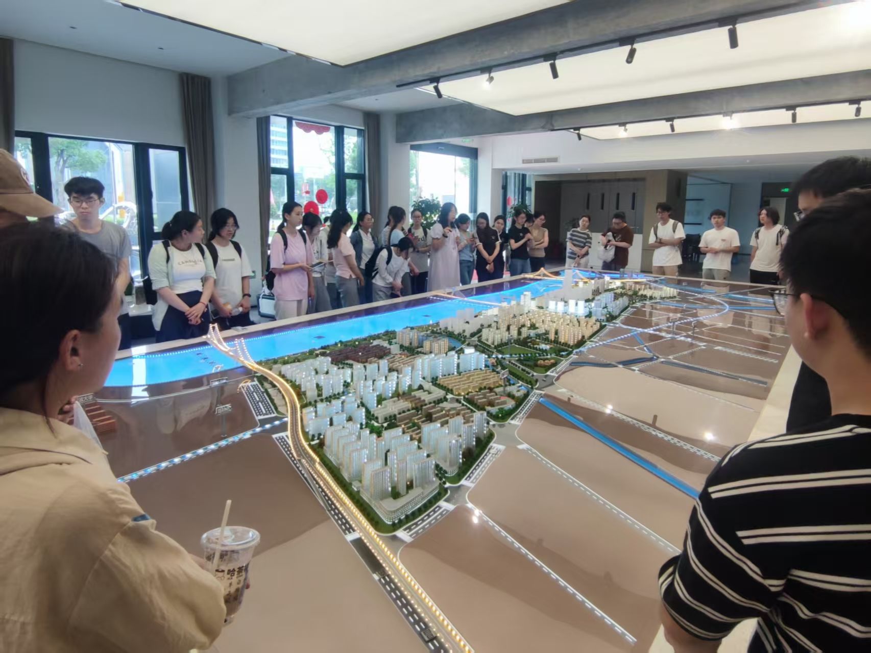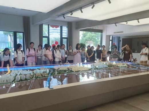 在文创港片区,同学们通过观察文创港大厅内的沙盘模型,邀请在此工作的工口漫画