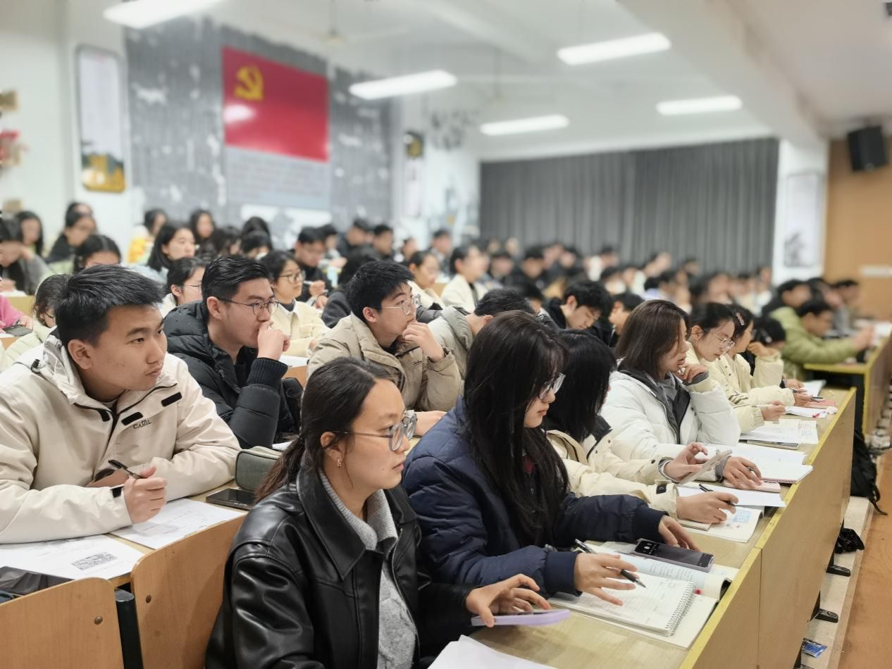 课堂正式开始,由作为校长的杜老师亲自上课,从工业革命引入,自然过渡到鞍钢与宝钢的对比思考。进一步从书本上的例题出发,以学生为本,分析题目答案,培养学生独立思考的能力,并带领学生完善课程板书,启发学生思维。最后更是以deepseek、宇树科技等时兴热点话题作为结尾,促进学生课后的持续学习。杜老师在授课过程中注重课堂氛围穿插,囊括了个人思考、同桌合作、小组合作等环节;把握课堂节奏,及时提示学生思考方向;呈现了情境交融的教学范例,力求让同学们在探究真实问题中落实学科素养。课堂最后更是联动同学们与学生一起回答问题,巧妙结合大学与高中的学习内容。