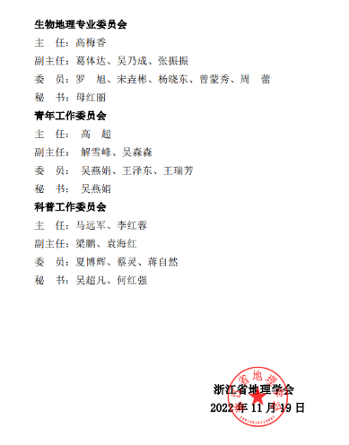 2022年11月18日,浙江省地理学会第十三次会员代表大会在杭州市浙江大学举行。中国科学院院士杨树锋教授,中国地理学会副理事长兼秘书长张国友研究员,浙江省科学技术协会党组成员、副主席武传宇教授等领导参与会议并发表讲话。