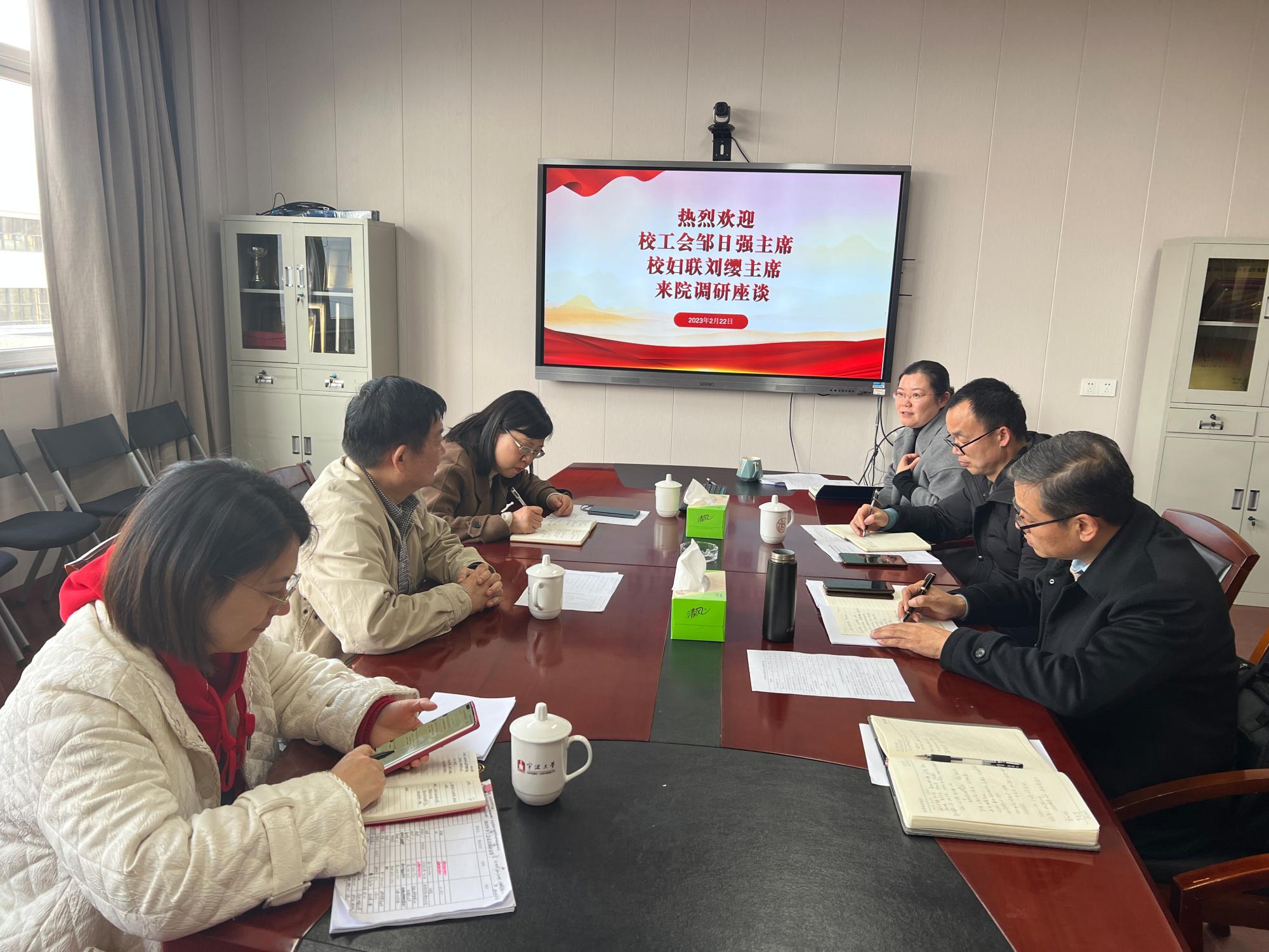 2月22日下午,校工会主席邹日强、妇联主席刘缨等一行到工口漫画 调研。学院党委书记李加林、副书记朱剑琼、分工会主席严晓东等参加座谈。