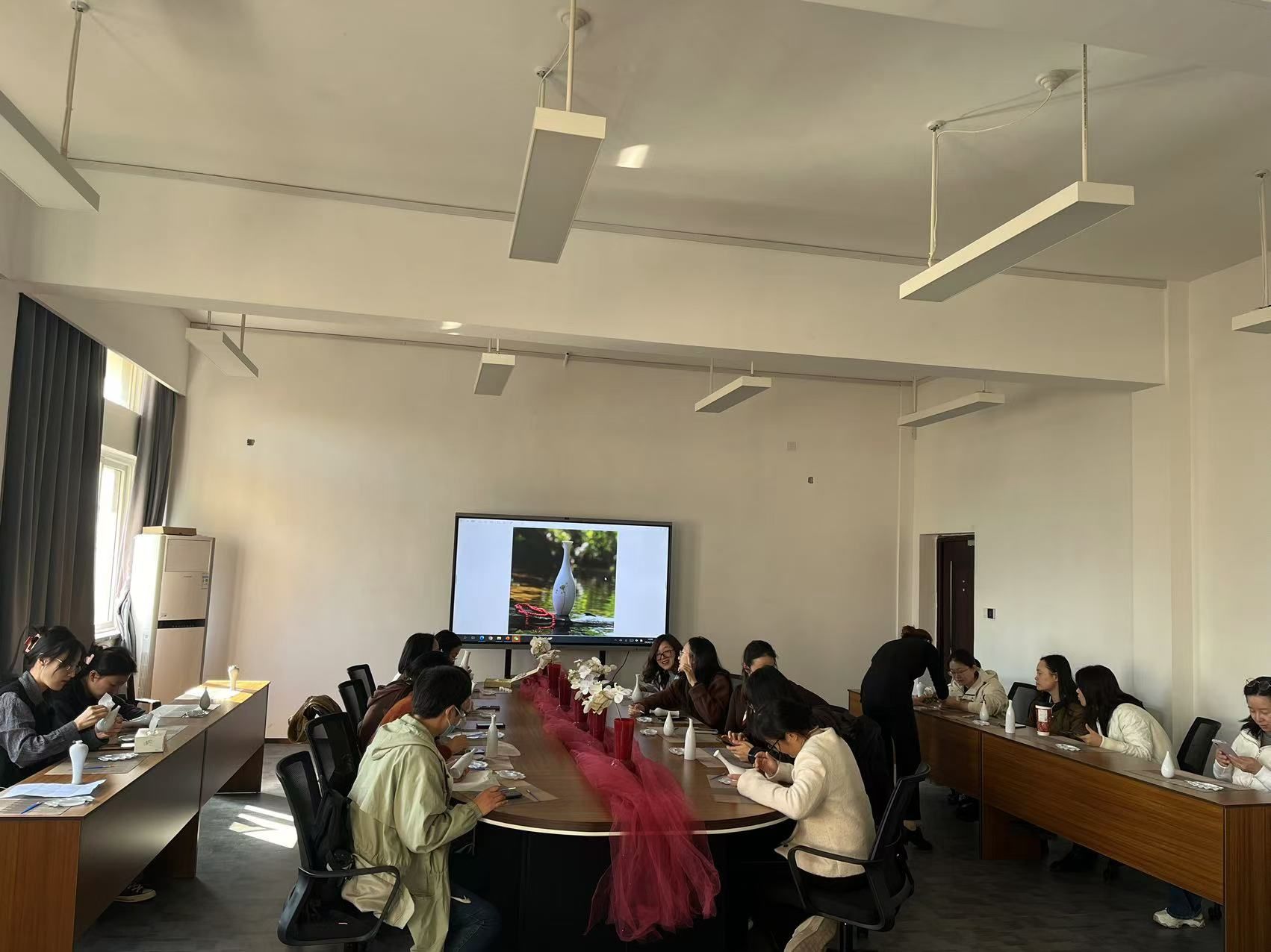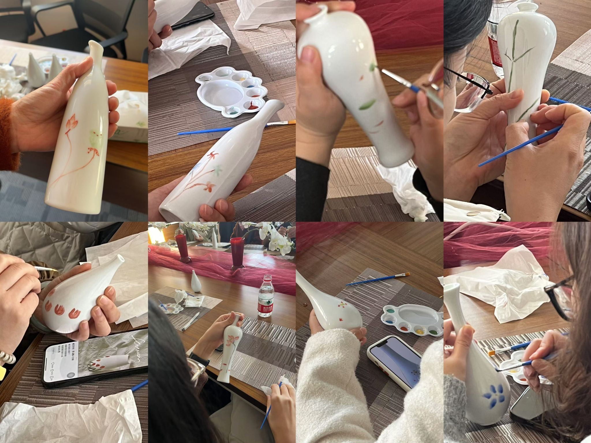 活动当天,学院分工会为每位参与者准备了精美的瓷瓶和丰富的绘画工具。这些瓷瓶造型各异,既有传统的瓷瓶,也有现代简约风格的白色瓷瓶,为教职工们提供了广阔的创作空间。活动现场,气氛热烈而温馨,教职工们纷纷拿起画笔,沉浸在艺术的海洋中。