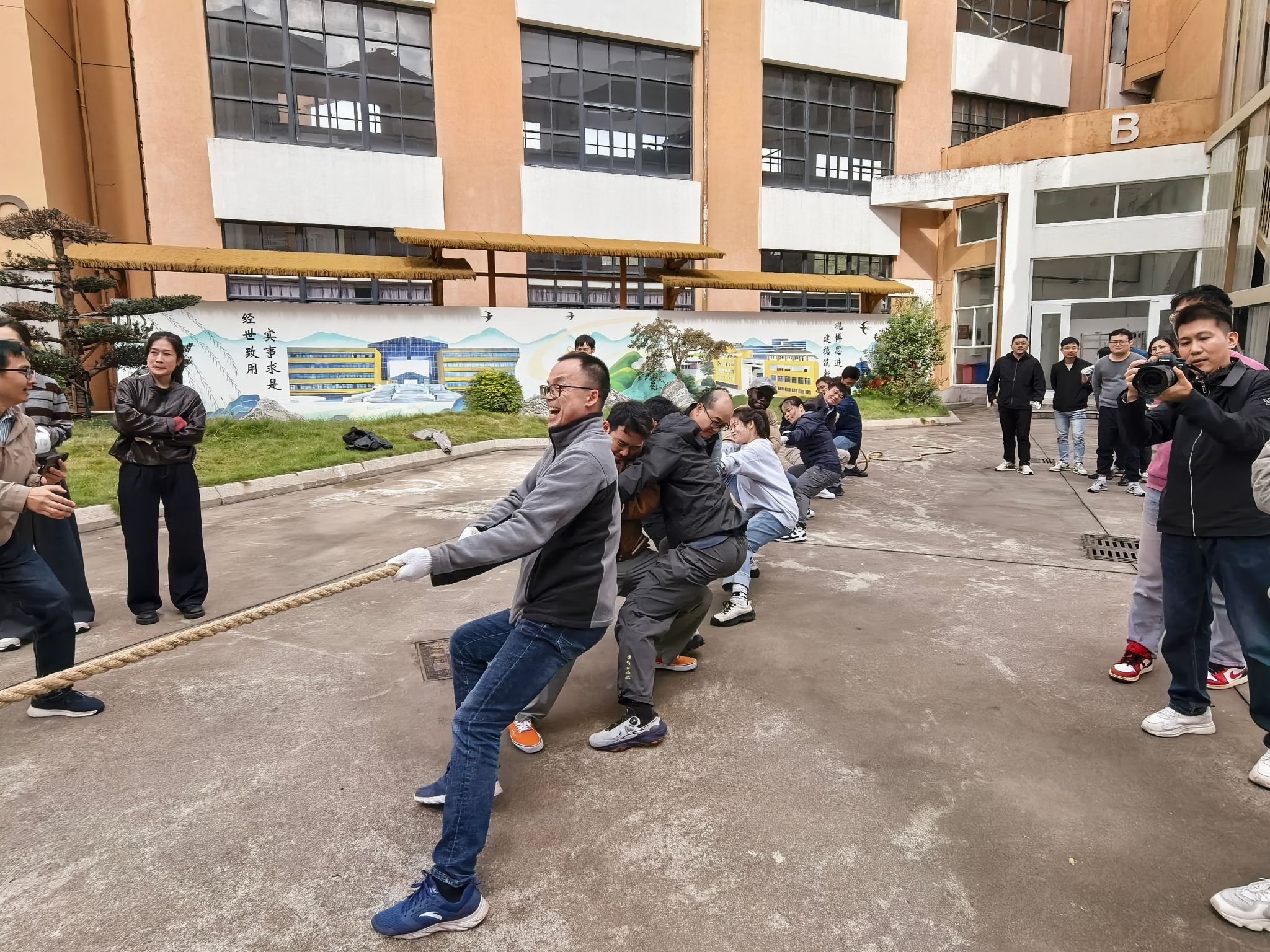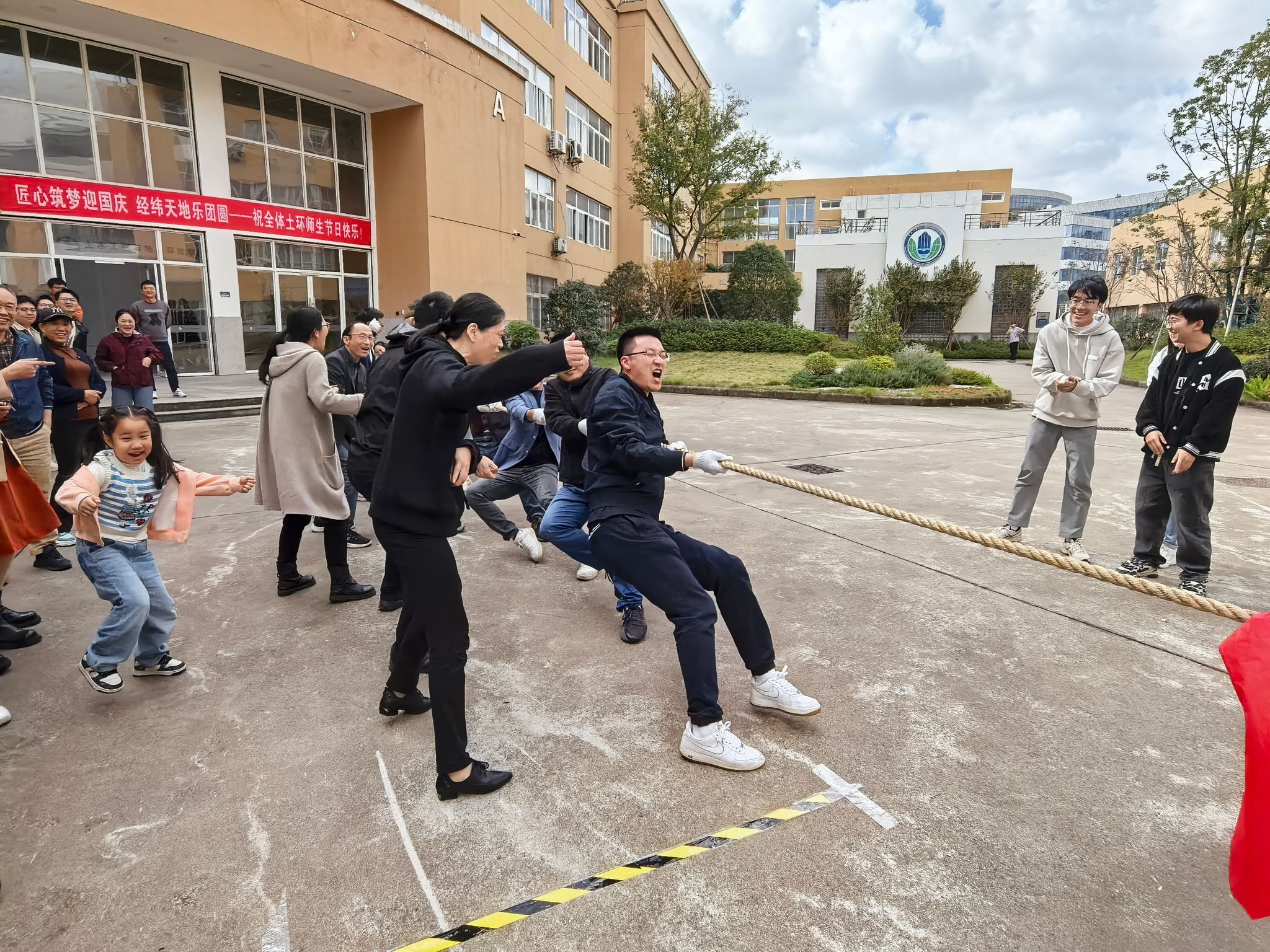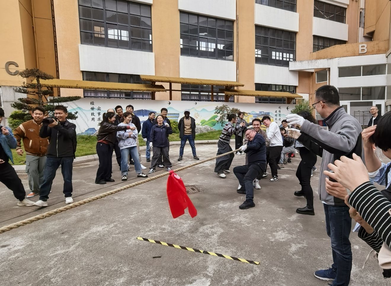 2025年11月13日,为丰富教职工文体生活、增强团队凝聚力,学院分工会在学院空地举办“凝绳聚力 拔出精彩”主题拔河比赛。来自学院各系所、研究院及行政学工的4支代表队共80余名教职工参与角逐,以力量与智慧的较量诠释了团结协作的深刻内涵。