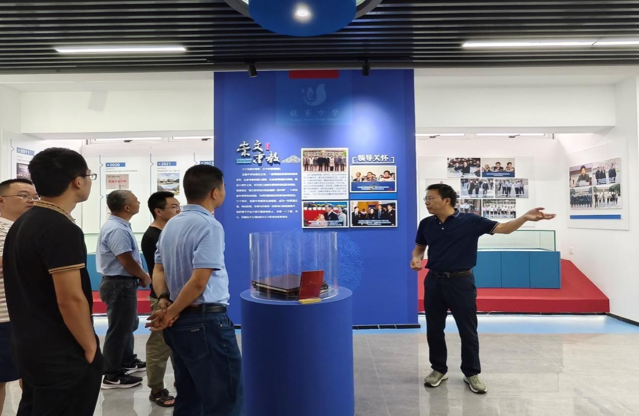 7月25日上午,培训班全体学员来到了宁波市龙赛中学,开展实践教学。龙赛中学杜劲松校长为学员们讲述了龙赛中学的建校历程,并多次提到龙赛中学的创办离不开包玉书、包玉刚先生等“宁波帮”的大力支持。随后,杜校长带领学员参观了学校发展馆、学生发展馆、教师发展馆。在这里,杜校长说道“对毕业的学生也好,对曾经工作过的老师也好,总能在这里找到自己的位置”。