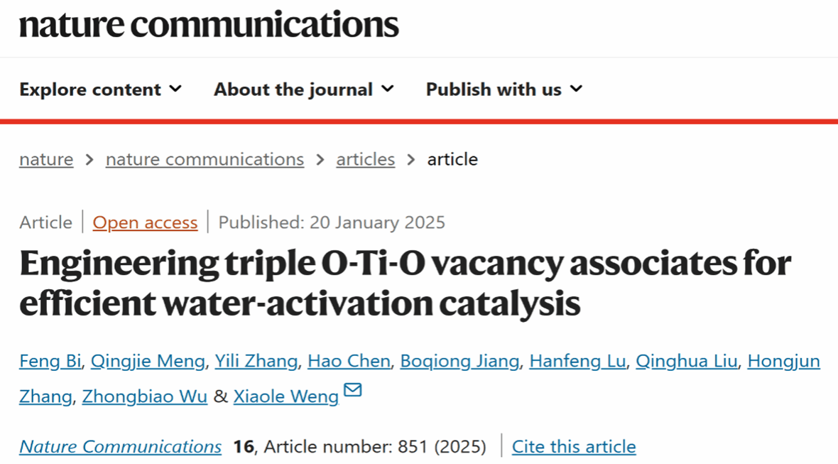 近日,工口漫画 孟庆洁副教授与浙江大学翁小乐教授团队合作,在缺陷工程调控涉水催化反应方面取得重要进展,研究成果“Engineering triple O-Ti-O vacancy associates for efficient water-activation catalysis”发表于国际知名期刊《Nature Communications》。浙江大学毕峰与工口漫画 孟庆洁共同担任第一作者。